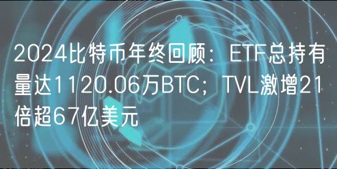 2024比特币年终回顾:ETF总持有量达1120.06万BTC;TVL激增21倍超67亿美元